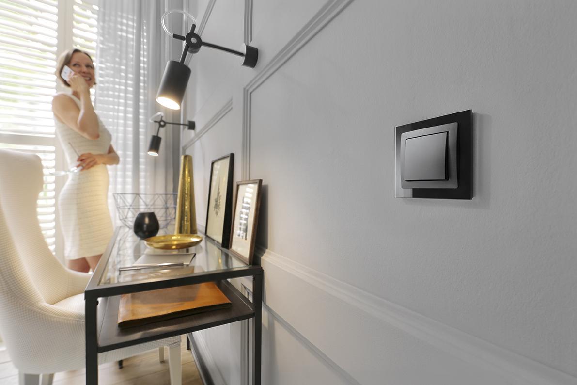 Właściwie dobrany osprzęt, pozwala wprowadzić do wnętrza pożądany klimat oraz podkreślić indywidualny charakter jego mieszkańców. Dlatego decydując się na wybór konkretnej serii osprzętu elektroinstalacyjnego, warto, oprócz niewątpliwego aspektu jego funkcjonalności, zwrócić również uwagę na jego estetykę wykonania. Wybór odpowiedniego materiału, z którego zrobiono ramkę osprzętu, a także koloru plakietki łącznika czy gniazda, pozwoli nam w subtelny sposób zaakcentować niepowtarzalny klimat wnętrza.